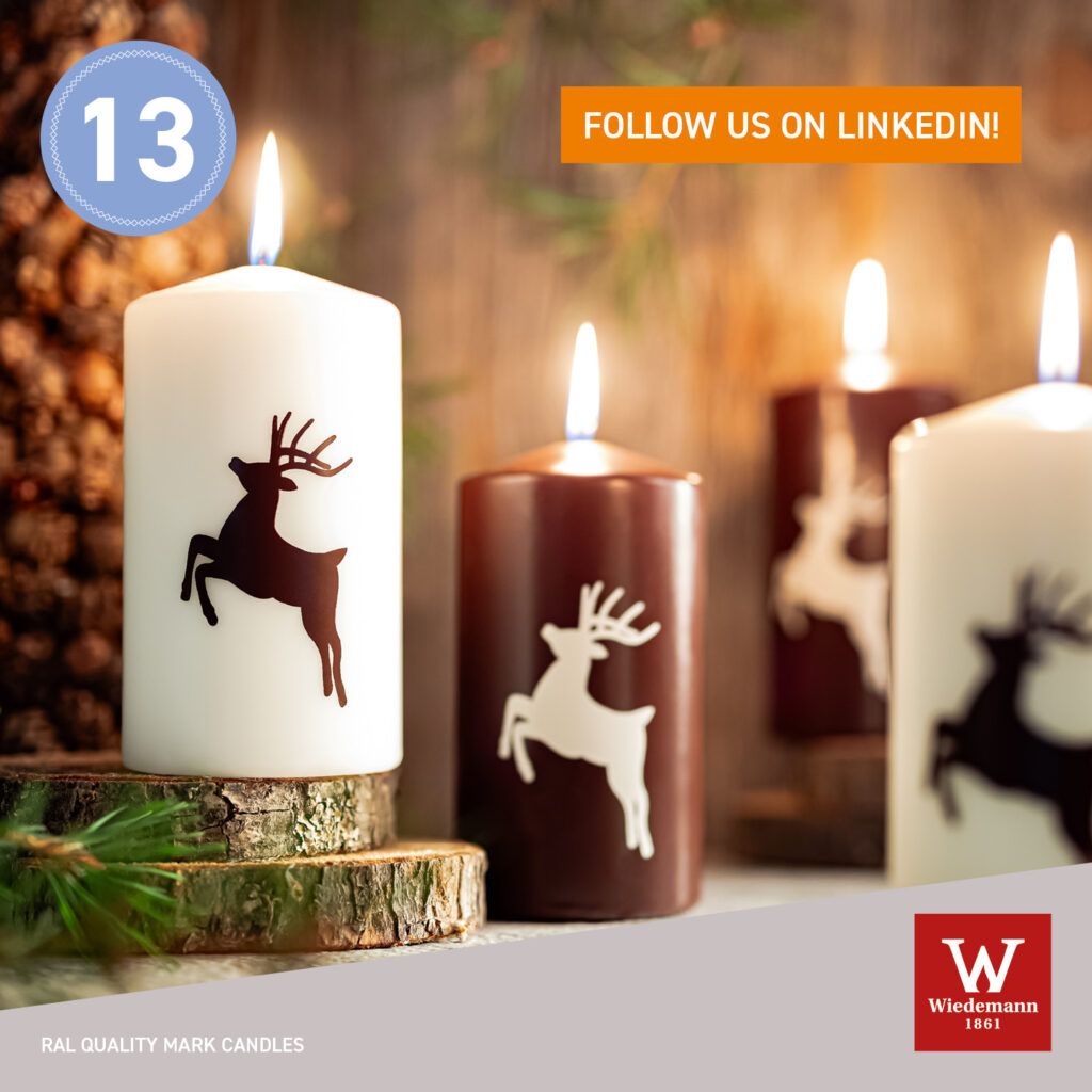 Today, you can look forward to the atmospheric “Hirsch” candle set from Wiedemann GmbH! The soft candlelight of these simple, attractive candles with cute deer motifs in two color combinations will bring back memories of snowy, cold Christmases. No accessories, no scent.