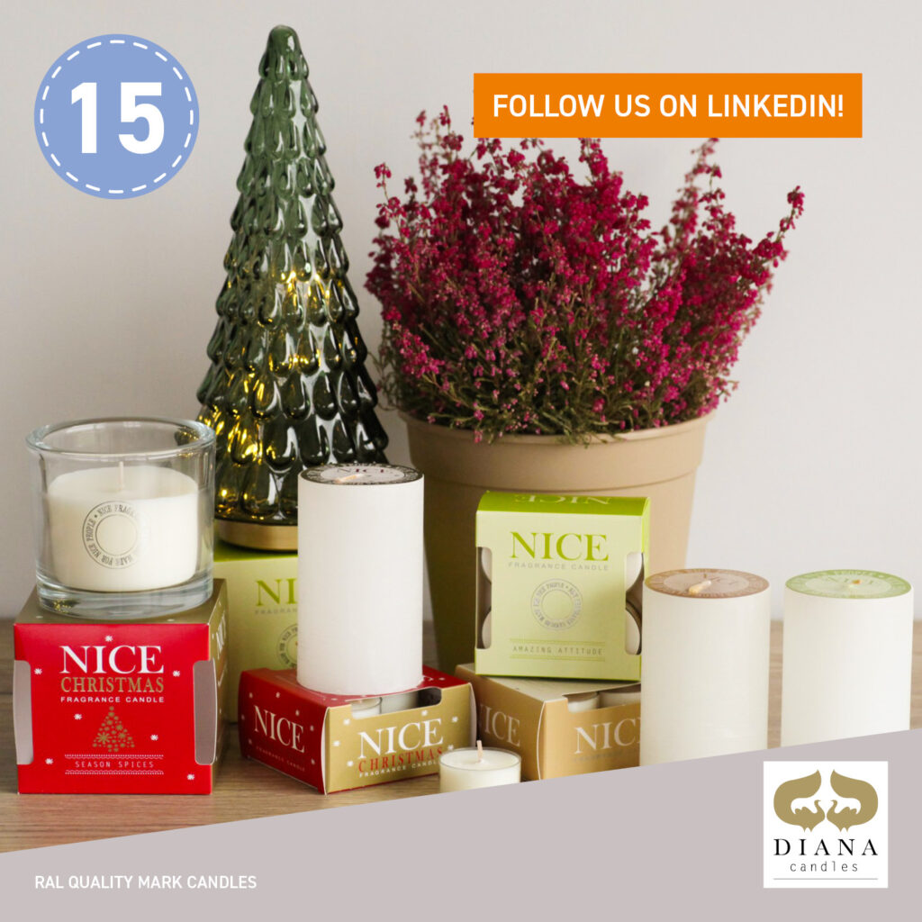 Behind today’s door, a fragrant surprise awaits you: a scented candle set from DIANA CANDLES, featuring a harmonious selection of aromatic candles! The set includes elegant pillar candles, stylish glass candles, and delicate tea lights – perfect for transforming your home into a sensual winter wonderland. Candles with scent. Glass tree and plants are not included in the set.